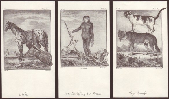 Manchmal finden sich auf einem Tisch Dinge zusammen, die zufällig wie zusammengehörend scheinen. Dementsprechend sind sie dann, nach Comte de Lautréamont, einem der Väter des Surrealismus: „Schön wie die zufällige Begegnung eines Regenschirms und einer Nähmaschine auf einem Seziertisch.“